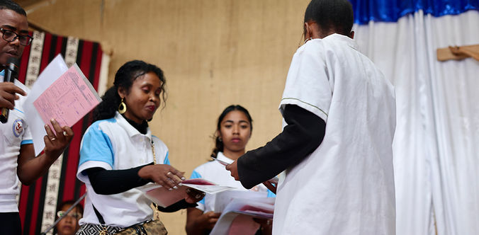 À l'Espoir de Tsiadana, ma vie a totalement changé. Les fournitures scolaires ne me coûtent rien, nous avons un repas à la cantine chaque midi, et en cas de besoin, nous pouvons accéder à un cabinet médical.